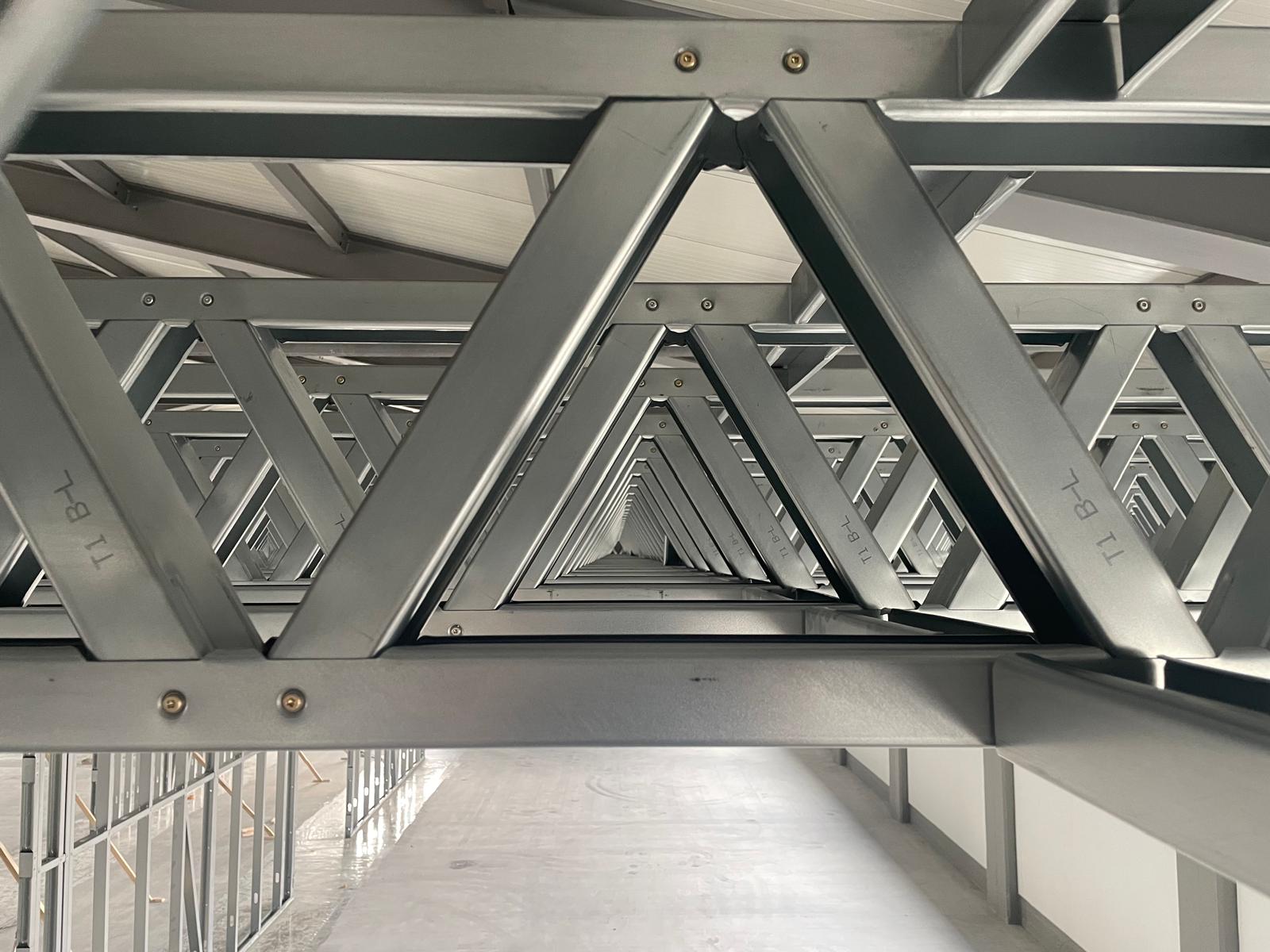Grâce à des portées de toiture atteignant 11 mètres, cette réalisation illustre la capacité du système en ossature métallique légère à répondre à des besoins techniques exigeants tout en offrant une grande liberté architecturale.